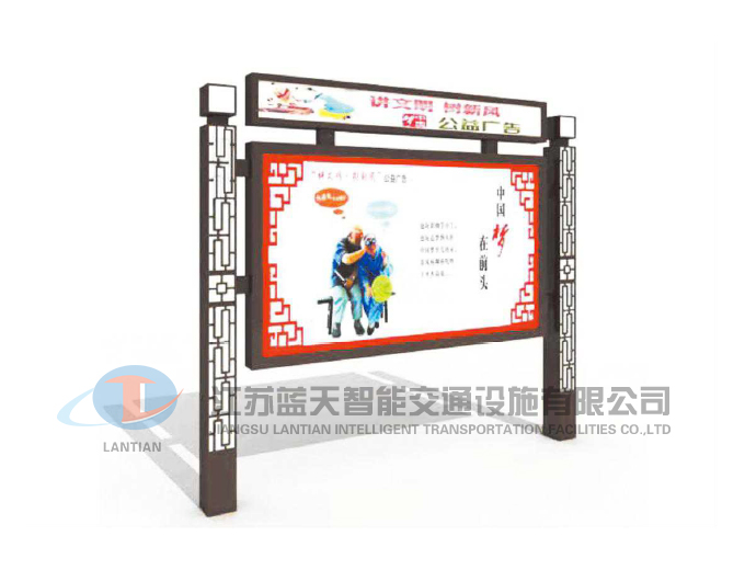 是一家生產宣傳欄,候車亭,公交站臺,閱報欄,指路牌,廣告垃圾箱,滾動換畫燈箱等系列產品廠家!產品多達上百種,亦可根據客戶的需求加工制作各種型號、規(guī)格的產品。目前已經成功的向市場推出裝備有太陽能的各類產品,緊跟國家倡導“節(jié)能低碳”的環(huán)保政策。
